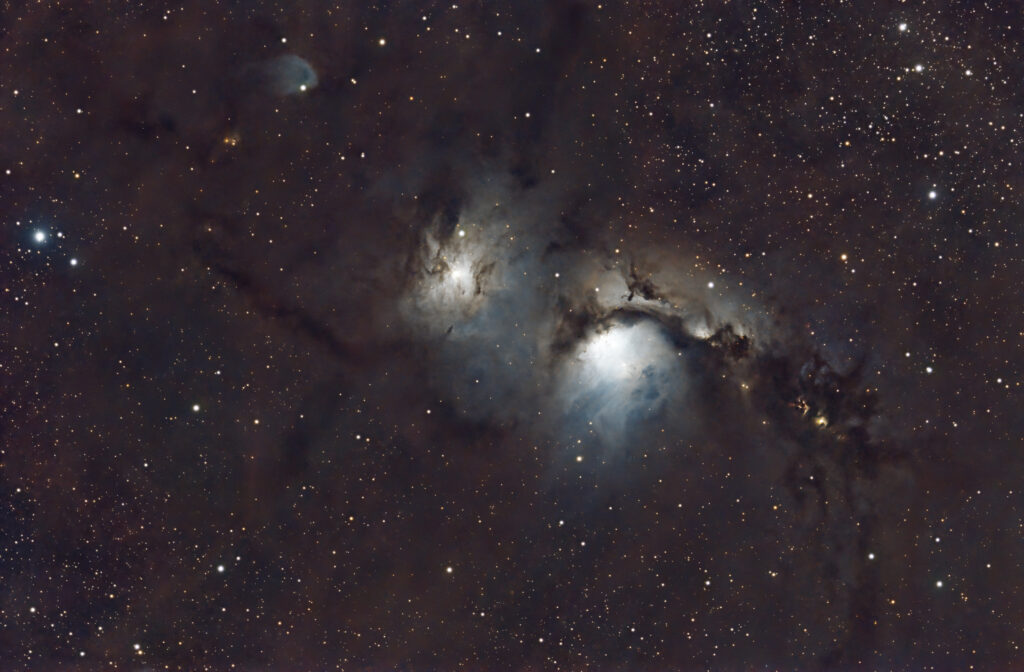 Dieses beeindruckende Astrofoto zeigt den Reflexionsnebel M78 im Sternbild Orion. Umgeben von dichtem Staub leuchtet das Gas in kühlen Blau- und Weißtönen, reflektiert vom Licht junger, heißer Sterne. M78 ist etwa 1.600 Lichtjahre von der Erde entfernt und zählt zu den bekanntesten Reflexionsnebeln des Orionnebelsystems. Die feinen Staubstrukturen und hellen Sternhaufen machen das Bild zu einem faszinierenden Einblick in die komplexe Schönheit unseres Nachthimmels.